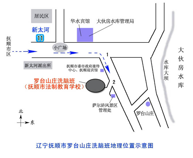 ![]() 顺这个写着“辽宁抚顺萨尔浒风景名胜区”右转,步行几百米就可看到“萨尔浒风景区”的大门(见下面的照片)。 | ![]() 洗脑班的楼。房间窗户都被铁栅栏封闭,显得阴森恐怖。 |