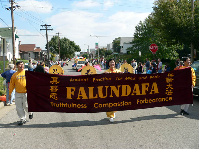![]() 法轮功学员的游行队伍 |