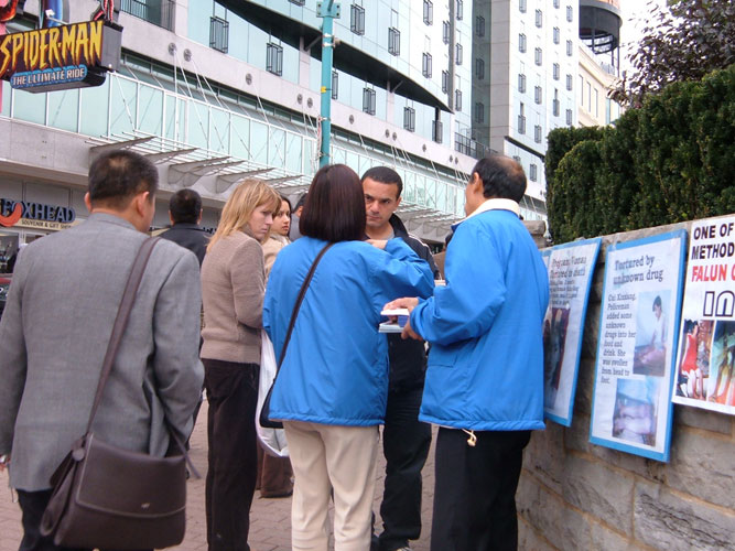 下午4时30分,音乐会结束了。纷纷出场的人们又一次见到了法轮功学员,進场时没有得到法轮功真象资料的现在得到了。有观众还友好的对学员说:“你们辛苦了。”
