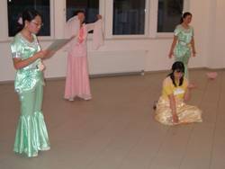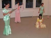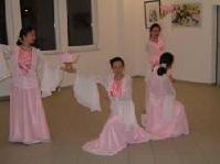 在两次表演中,法轮功学员们以舒展大方的功法,缓、慢、圆的动作呈现了内心深处的宁静祥和。舞蹈《花仙》及《莲花颂》表达了法轮功学员们出淤泥而不染,本着真、善、忍的原则对待来自中共史无前例的残酷迫害。