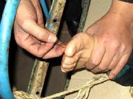 这是饮马河劳教所的一大发明,把塑料管头割开四个口然后往腋窝和大腿根处猛拧,拼命钻。下面是法轮功学员乔建国(山东省诸城市,被关押于饮马河四大队二分队)及其所见的迫害记实: