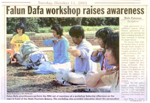 密西西比镜报(Reflector)10月11日报导,星期六(10月8日),本地的一种打坐功法的炼功者们举办了一个学习班,教那些有兴趣的人学习这种简单的功法。在中国,这种功法的炼功者们受到了迫害。