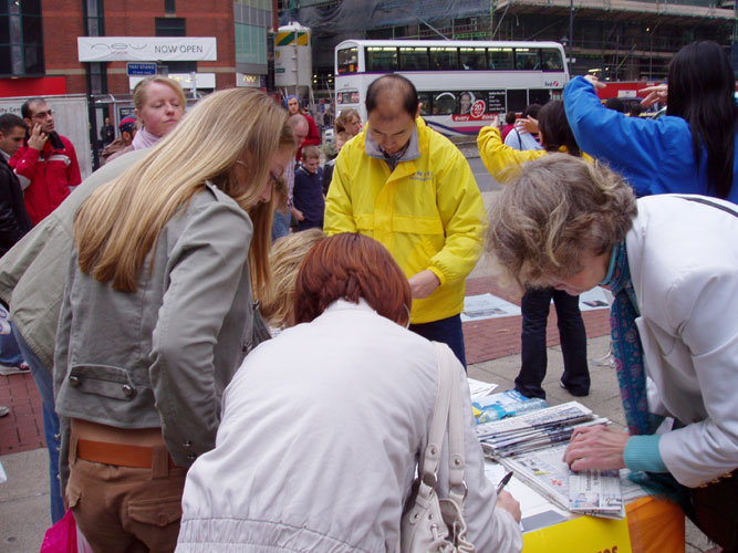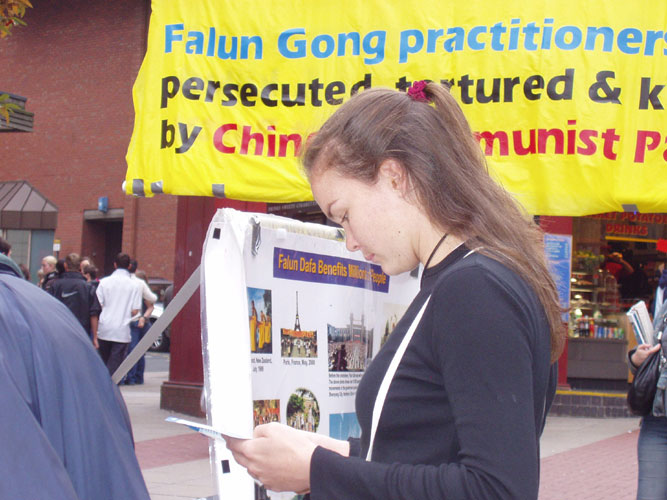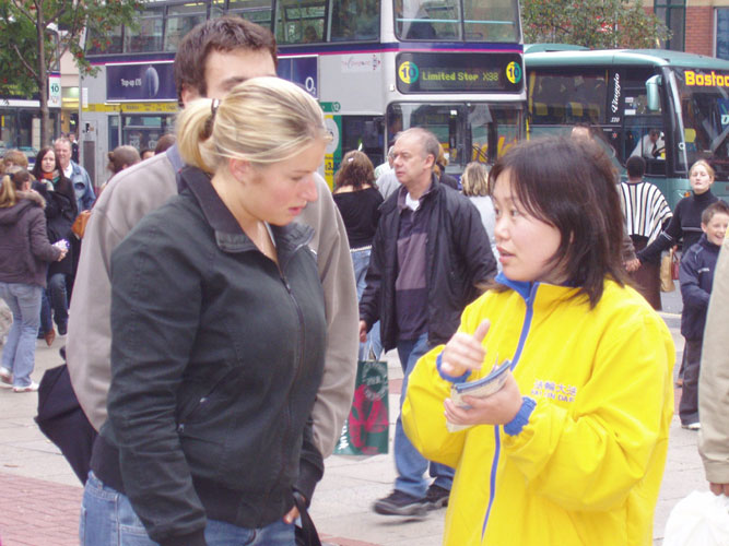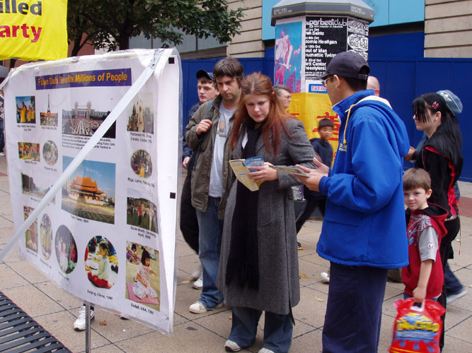 利兹市一位活动组织者路过洪法场地,非常感兴趣,她主动邀请利兹的法轮功学员参加11月为期3天的一个活动,希望学员届时多方面多角度的介绍法轮功真象、祛病健身的功效、法轮功学员反迫害的情况和共产党的邪恶等等。