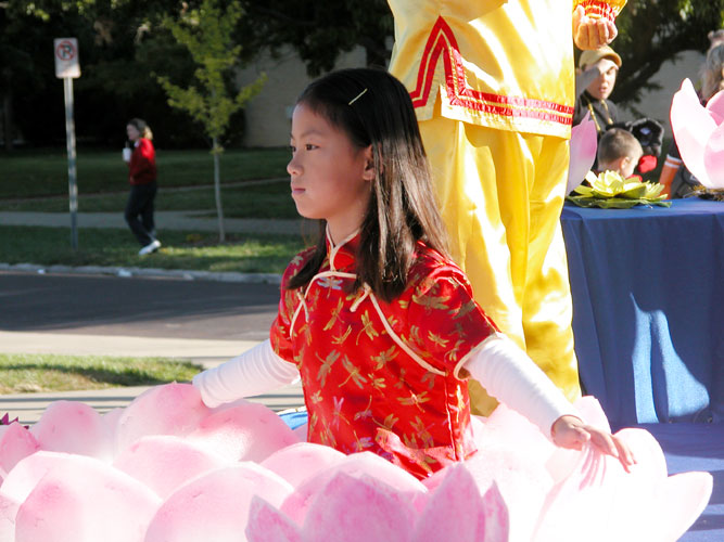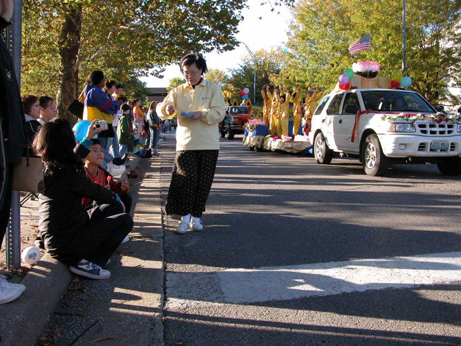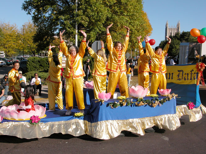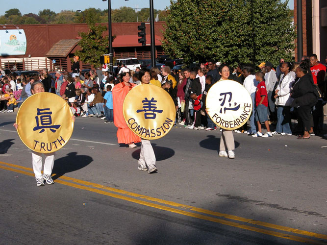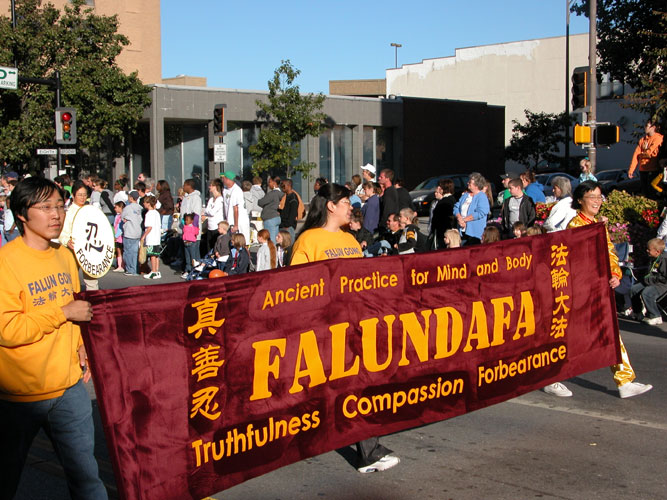 【明慧网2005年10月18日】一年一度的返校节(Homecoming)是美国很多大学秋季的重要活动,校友们会从各地返回校园,重温当年的美好记忆并走访故交旧识。返校节的主要内容包括返校节大游行和一场与主要对手较量的大学生美式足球赛。这项传统是1911年从位于密苏里(Missouri)州中部的密苏里州立大学哥伦比亚分校开始的,迄今,该校的返校节依然是全美最大规模。今年,观赏返校节活动的数万观众们又一次见到了参加游行的法轮功学员们,并对他们报以热烈的掌声和喝彩。