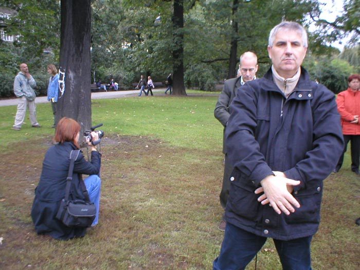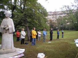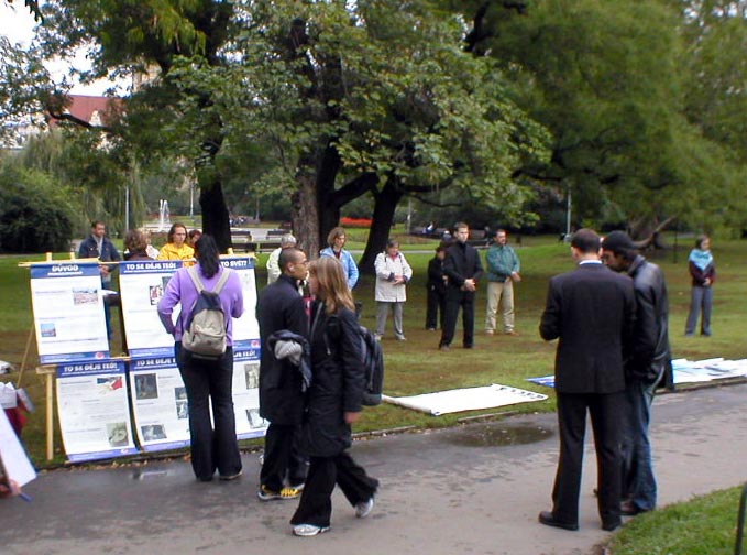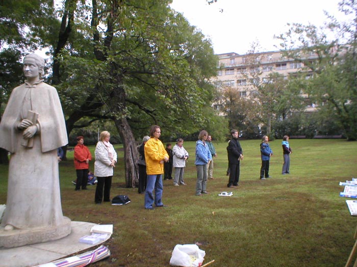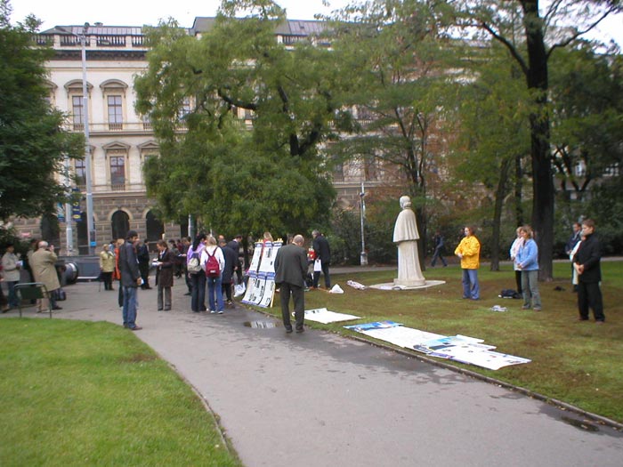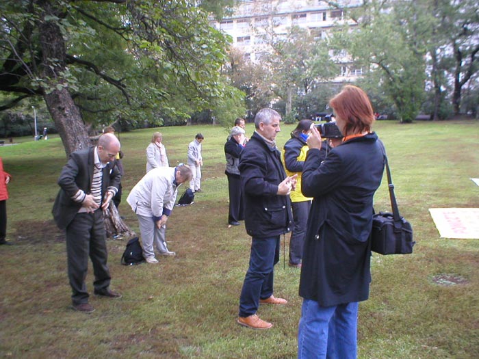 一位电视台的女士来到了炼功点,该女士拍摄了炼功场面并采访了几位学员。她说,在中共代表团访问捷克期间,她将用这些画面把议题引向人权问题。