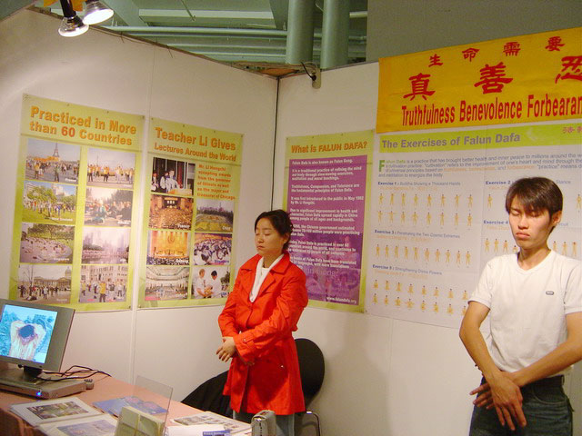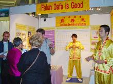人们经过展台时,常常被学员的演示功法所吸引,还从学员们微笑着递上的法轮功真象资料和纸折莲花中得到一份惊喜。这里的祥和慈悲之场,给人们留下深刻的印象。