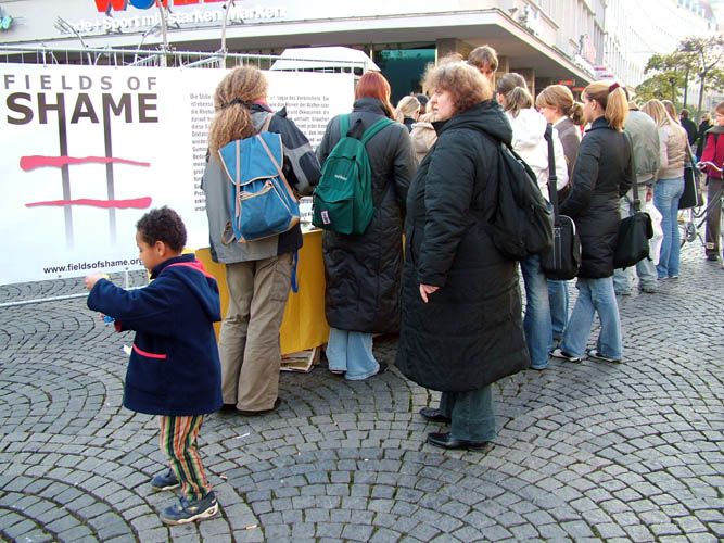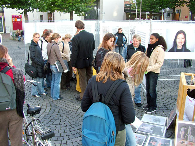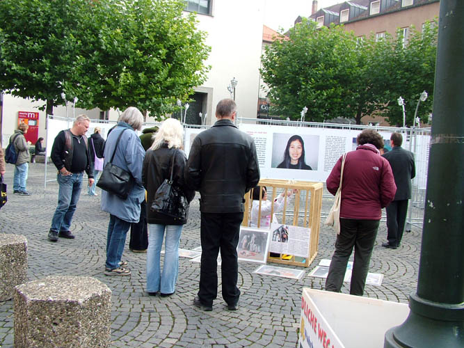10月18、19日,在德国南部城市奥格斯堡(Augsburg)市中心,德国的法轮功学员们参加了“耻辱地带“的人权罪行巡回图片展,其中以揭露正在中国发生的,中共残酷迫害无辜法轮功学员的图片,尤其让世人不寒而栗。