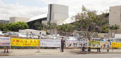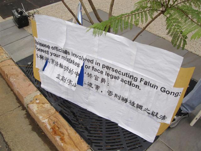 法轮功学员衷心告诫中领馆内的官员们:“逆天意而行的中共统治摇摇欲坠,迫害难以为继。对邪恶的最终审判越来越近。然而,大法的传出就是为了救度世人,包括社会各阶层的人士。即使曾经做过错事的人,也还有机会弃恶从善。”惊醒吧!不要再继续助纣为虐,否则,最终受伤害的只能是你们自己。