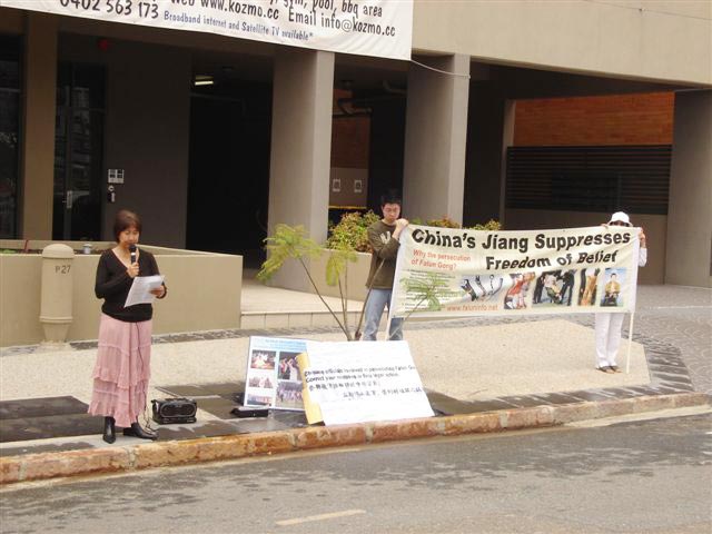 当时,马路对面的几位行人目睹了这一切,他们非常钦佩法轮功学员所表现出的风范,并对中共领馆的做法表示愤慨。人们不禁要问:“中国领馆的官员们,难道你们真的不为自己这种既幼稚可笑又卑鄙的伎俩感到羞耻吗?”中领馆的官员们应该明白澳洲是一个民主国家,而这里的公民完全有发表言论及和平请愿的权利。这里不是中共专制,中领馆的做法已违反了澳洲公民权,对此,澳洲有关部门非常重视,警方也正在进一步调查。