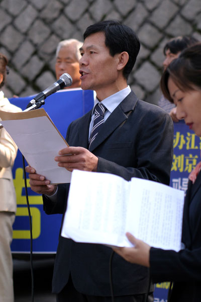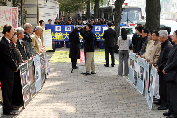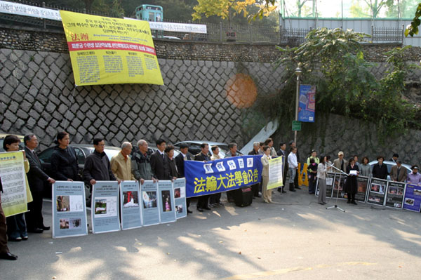当天出席活动的法轮功学员表示:“自1999年以来,中共一直在镇压法轮功,到2005年,已有至少2700余名学员被迫害致死。”学员们呼吁“惩办江泽民和其追随者罗干、周永康、刘京等人,制止对法轮功学员的迫害” 。最后学员们向驻韩国釜山中国领事馆递送了“法轮大法学会公告”。