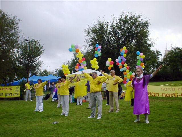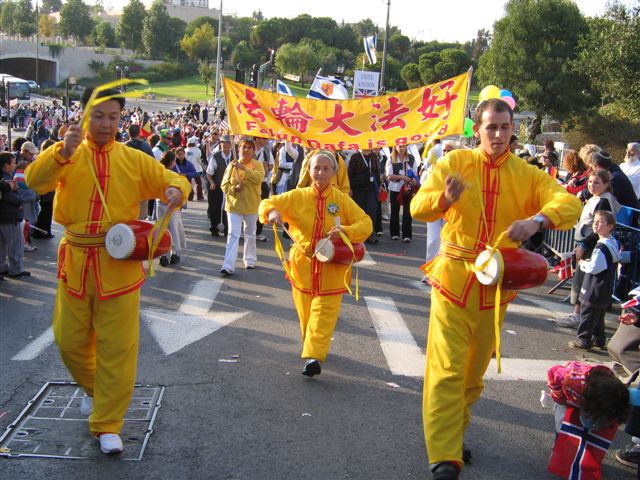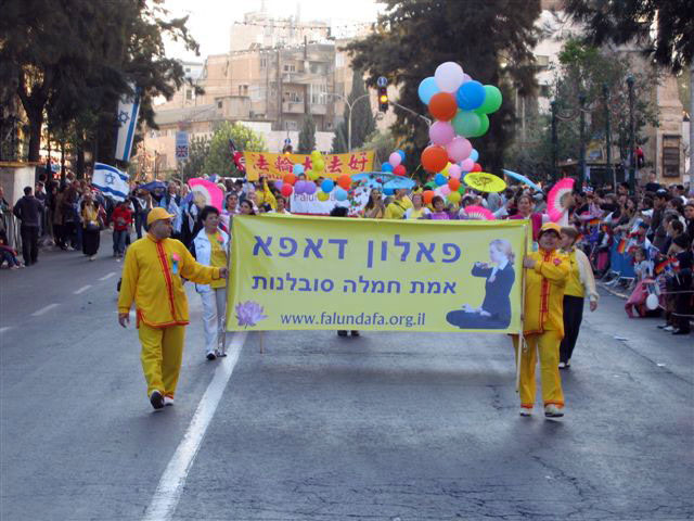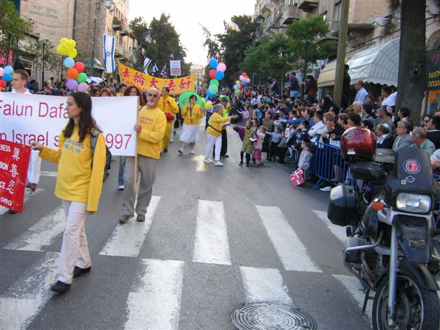 耶路撒冷市民面对法轮功学员的游行队伍非常的好奇,很多人用英语询问学员们是从那里来的,当他们听到熟悉的希伯来语回答时,都非常高兴,并喊着“和平”表示欢迎。学员们派发了各种语言版本的法轮功真象传单,人们都高兴的接受了。