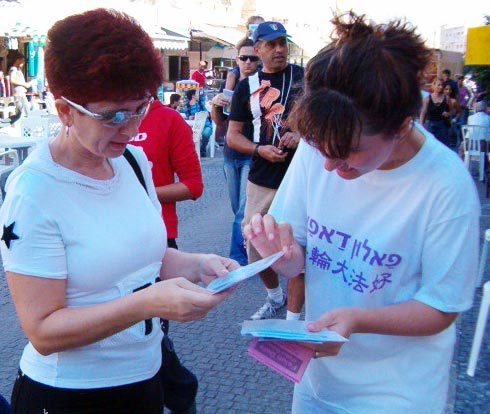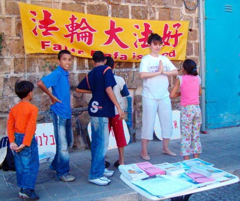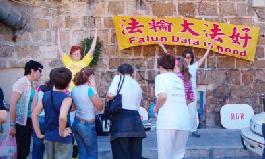 几天后我们从阿卡阔出发来到了海发城(Haifa)。在当地举行电影节的公园里组办者给我们提供了位置和桌子。我们摆放了传单和纸叠莲花,旁边放了我们的真象展板。一边是我们炼功,另一边有大法弟子教孩子们学叠纸莲花。在活动期间有两个年轻人经过,我们给他们发了传单,开始时他们不是很情愿的接了,当我告诉他们这个事情很重要,法轮大法的原则,并且全世界都需要“真、善、忍”。那个年轻人说:“是啊,世界需要真善忍是很重要的!”学员告诉了他们在中国发生着对大法弟子的迫害,他们都非常惊讶。一个年轻人过了一会特意回来问我哪里能学到功法,而后问到“第一次初学不要钱吧?”当我告诉他教功都是免费的,他特别惊奇,眼中流露出感激的眼神。