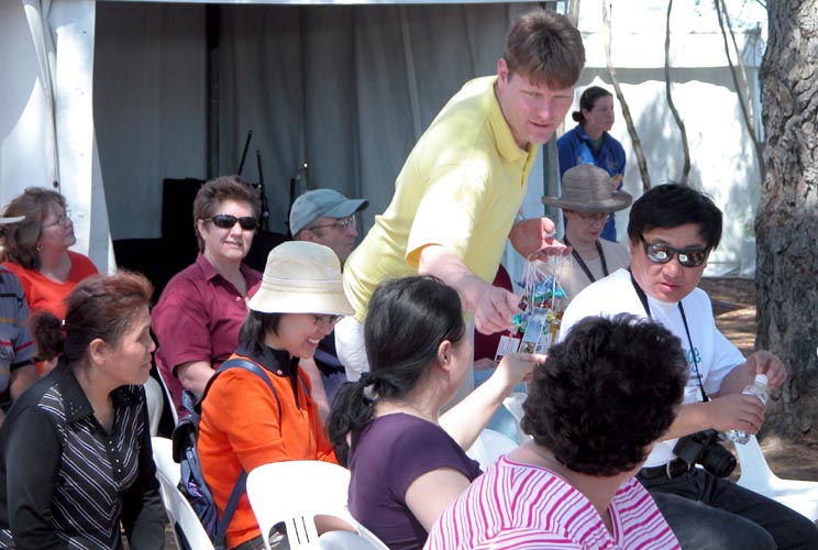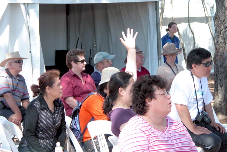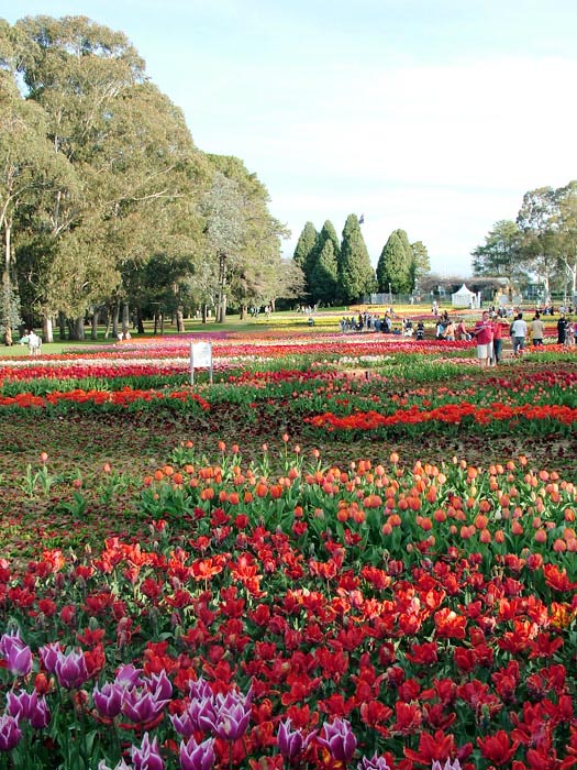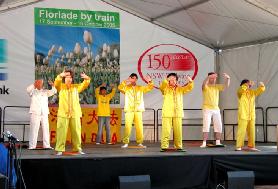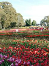 坎培拉被誉为 “大洋洲的花园城市”,在景致迷人的格里芬湖畔的联邦公园内,以一百多万株名贵郁金香为主的花展,吸引来自澳洲本地、及其它国家的游客慕名前来观赏。许多人前来赏花,也观看了法轮功功法表演;有的观众当场跟着学炼;法轮功学员也赠送附有洪法信息的纸莲花给部份观众。