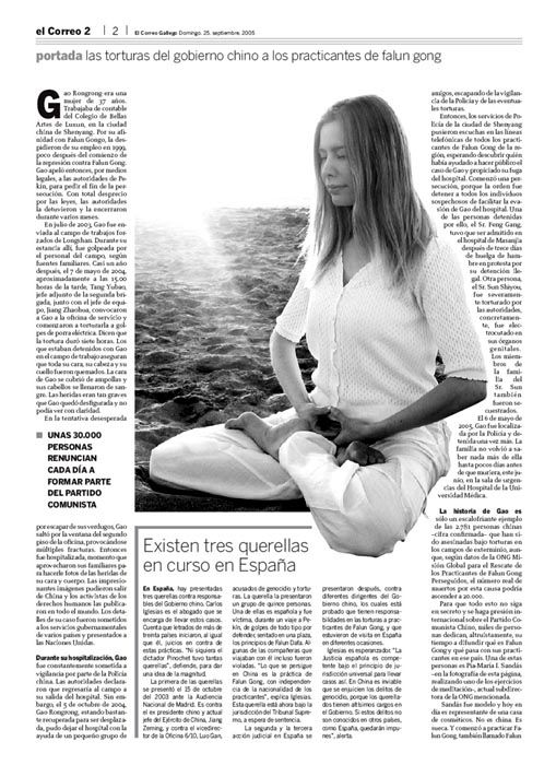 2003年10月15日,一个由15人组成的团体──其中一人是西班牙人,他在北京时被警察暴力殴打──向马德里国家法院提起第一个控告,控告中共前主席、军委主席江××和610办公室副主任罗干群体灭绝和酷刑罪。这个案件现在最高法院等候开庭审理。