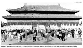 ![]() 在法轮功被江××禁止之前,成百上千的中国人在公园里自由炼功 | ![]() 马德里的蒂乐公园(porque del retiro),在安静、祥和中炼法轮功的人们 |