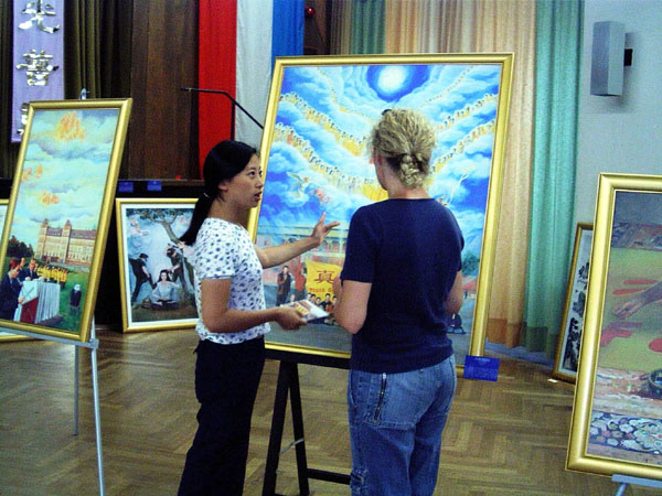 来参观者有退休的老年夫妇,有公司职员,有放假的学生们,有家庭主妇,也有幼小的孩童等,不同阶层的人都有共同的感受:画展展现了一条回归传统,回归纯正的艺术之路;而在中国大陆发生的对法轮功的迫害实在不可思议。