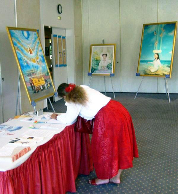 “感谢画展和深层次的交谈,希望法轮功和真善忍在世界广传。”
