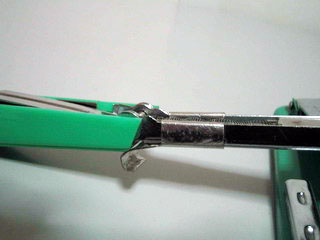 最后有一个小问题和大家说一下,就是出纸的导纸棍有个定位的支架容易断,这个东西是防止导纸棍左右串动的,但它设计的有缺陷,容易断,断了以后很容易就能发现,因为它就在出纸端口,我这台机子断了以后我想了一个办法,我用AB胶把断下来这一块粘在导纸棍右端的机框上面,把导纸棍左右串动的余量给他定死了,再用起来倒也不错。