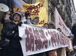 时值中共党魁出访西班牙,马德里的气温骤然下降,一向晴空万里的马德里破天荒出现了连续的阴雨天气,有时甚至大雨倾盆。法轮功学员们始终冒雨从早到晚昼夜守候在中共党魁出入的各场所,告诉他及中国代表团:“法轮大法好!”“胡锦涛:神和人民给你的时间是有限的!”学员们还打出了“法办江泽民、罗干、刘京、周永康”、“法办迫害法轮功的恶警和坏人”、“停止迫害法轮功”……等横幅。