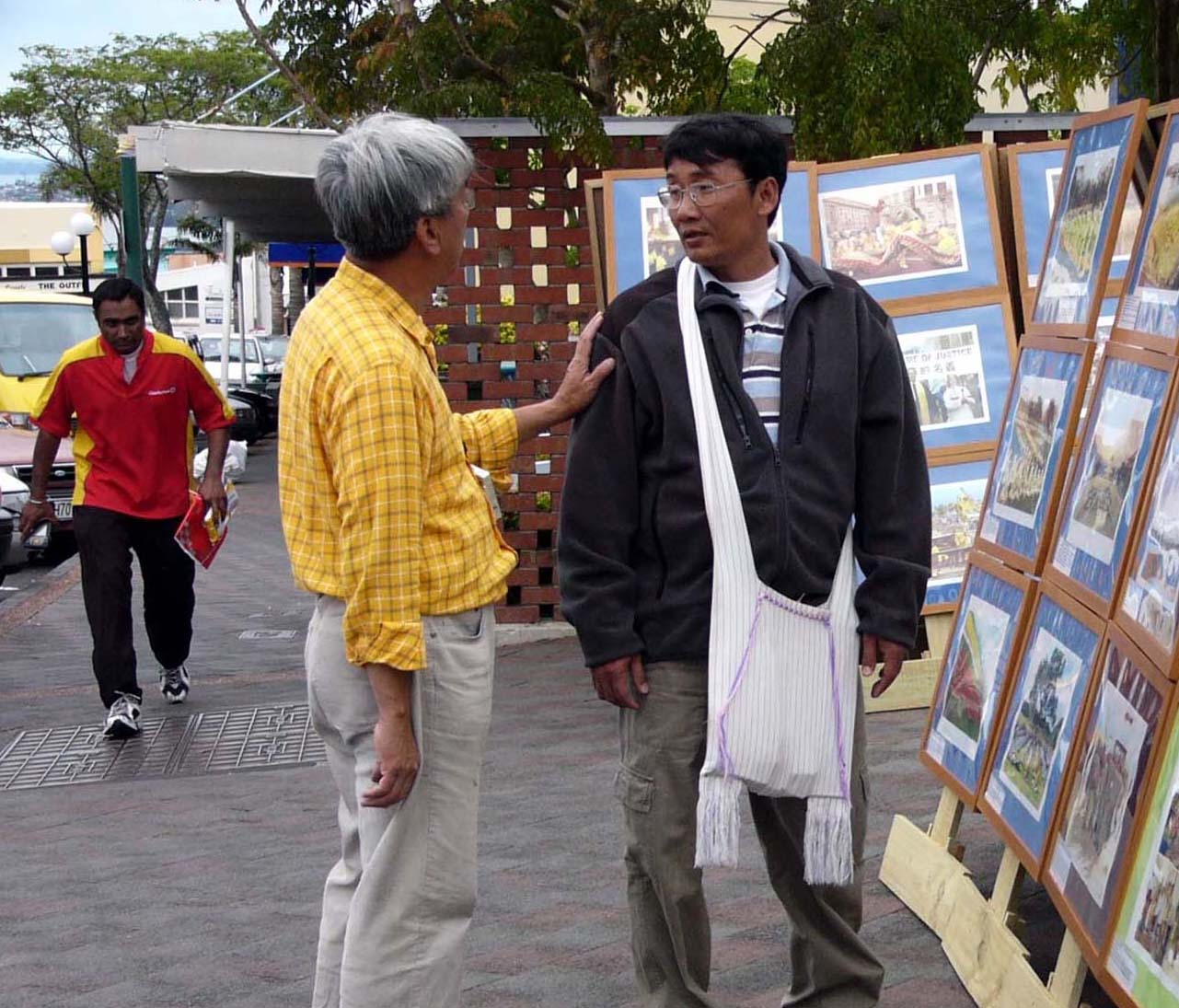 11月20日,摄影展到新西兰奥克兰西区的社区,来了许多华人看展览,其中有一对母子到社区找人办事的,细细看了每一幅照片,尤其看了失去修炼法轮功父母的孩子们和高蓉蓉被迫害的照片时,他们说:我们知道法轮功好,谁没有姐妹孩子,他们(中共)怎么下的去手,真太残忍了。我们要回国,中共这么残忍,我们不敢签名声援啊,真对不起,我们在心里支持你们。