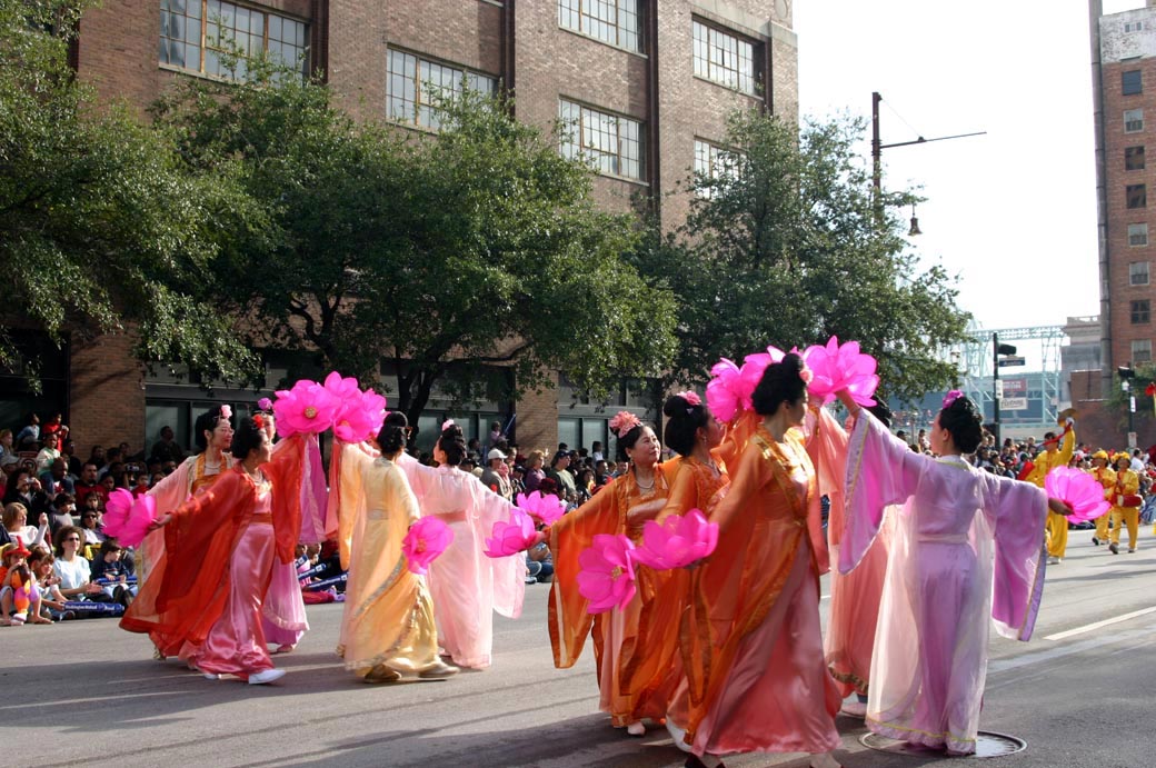 2005年11月24日,大游行在休士顿市中心(Downtown)举行,上午9时,大游行正式开始,前面是由十二女骑士队伍、和市长座车等开道,随后有学校滑轮队,有HEB大公司的花车,麦当劳的花车为鞋形,很风趣,其它还有各式各样的花车,也有与市民生活有关的消防队、清洁车等,还有其它一些团体,其中包括法轮功,法轮功队伍由前几年几十位提至今年前十位之内。