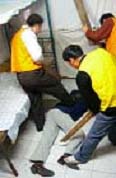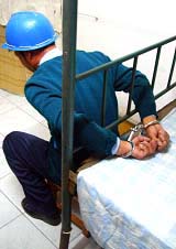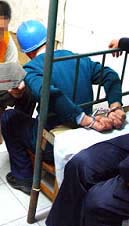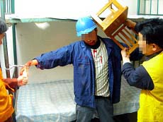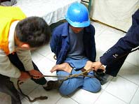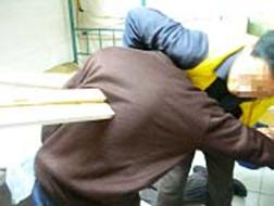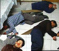 此种酷刑是锦州教养院新收大队的恶警对新抓进来的法轮功学员通常采用的酷刑之一。以下是恶警指使四防员连续打昏、重伤三名大法学员的经过,分三个步骤描述。
