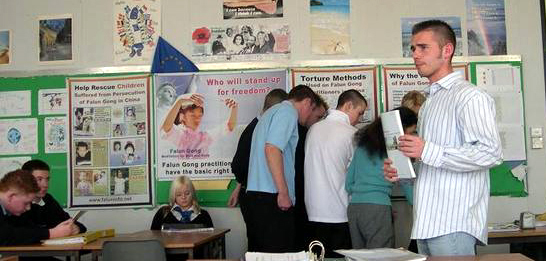 全班诚挚的感谢法轮功学员们,老师也热情的感谢他们,说这场介绍真是好极了。这位老师还建议学员们拜访苏格兰的其它学校,她表示这场迫害使她震惊,她很高兴介绍会使学生们了解了这场迫害。