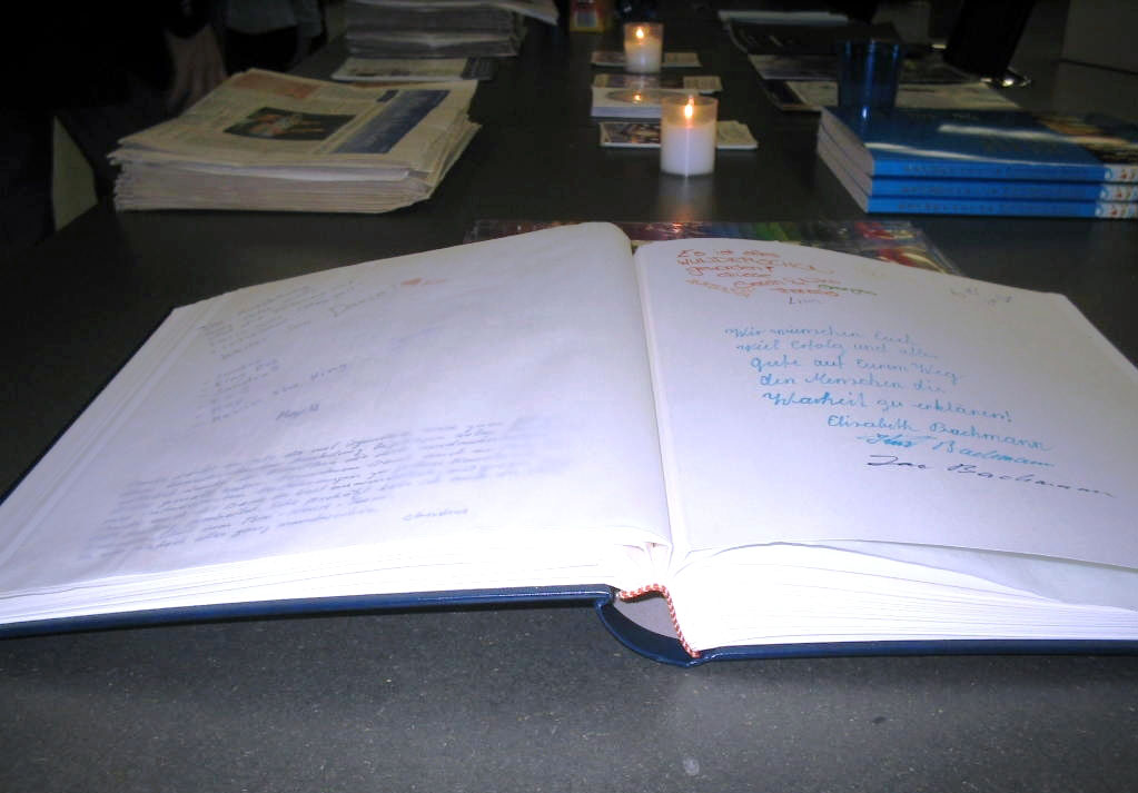 因为赶时间她又匆匆的走了,留言本上却一直会有她的心声:“这些画非常感人,但最让人震撼的是那些人在迫害和酷刑面前一直坚持自己的信仰,不言放弃。”