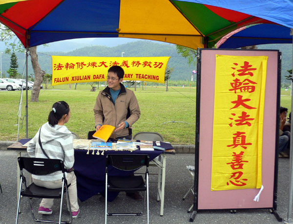 有同学来参观法轮功展位时,问及法轮功在中国大陆被迫害的原因。副社长蔡泰祥解释说:法轮大法教人修心重德、实践“真、善、忍”,自1992年传出后,因其祛病健身的功效卓著,使一亿人身心受益而走上修炼之路;然而,中共前党魁江××出于嫉妒,无法容忍越来越多的民众信仰“真、善、忍”,自1999年开始了对法轮功的血腥镇压。