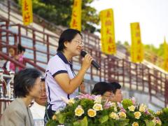 ![]() 市长候选人涂怡娟高喊“法轮大法好”! | ![]() 400多位学员表演五套功法 |