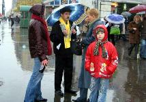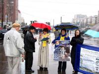 10月15日和22日,学员们连续两周利用周末的业余和课余时间在居民区的地铁站附近开展活动。天虽然下着雨,人们行色匆匆,但大法学员仍顶着秋雨向过往行人发送真象传单。