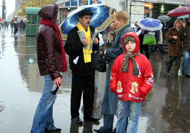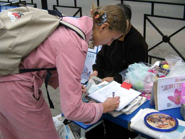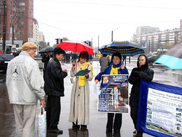 人们不断的停下脚步向发传单的学员们提问题,学员们抓住机会深入讲清什么是法轮功以及目前在中国仍持续发生的迫害情况,交谈中也在清除着一些俄罗斯人头脑中残留的邪党文化造成的毒素。一些来自于其它前苏联国家的民工也热心的听真象。图片上展示的中国法轮功学员所受到的酷刑折磨和受迫害法轮功儿童的图片激起了他们的同情。