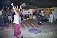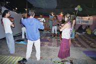 今年,学员们在这里立起了帐篷,装点上莲花,打开了介绍什么是法轮功以及中共如何残酷迫害善良的法轮功学员的真象展板,学员有的炼功,有的讲解展板,有的折叠纸莲花,不少游人被吸引了过来。