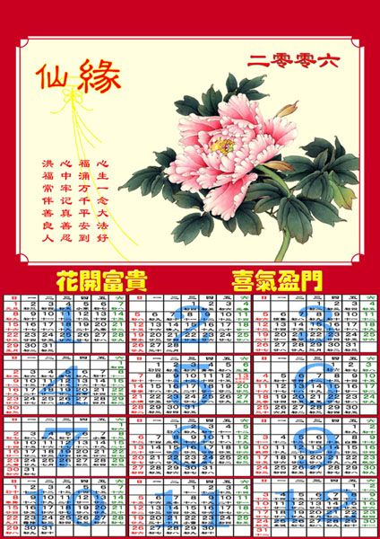 日历:花开富贵 喜气盈门