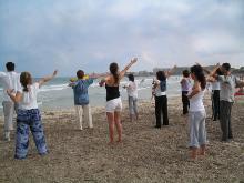 ![]() 海边炼功 | ![]() 与电视台台长合影 |