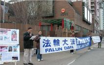 “然而,大法的传出就是为了救度世人,包括社会各阶层的人士。即使曾经做过错事的人,也还有机会弃恶从善。”法轮功学员今天再次站在了中领馆前,宣读《法轮大法学会公告》,希望中领馆官员能认清局势,莫再助纣为虐,为自己为家人考虑,立即停止参与或协同中共迫害法轮功。