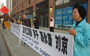 坚持在纽约中领馆前的法轮功学员(图)