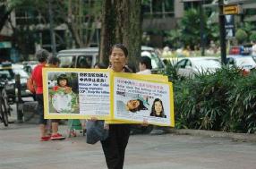 2005年11月6日下午1点多,新加坡法轮功学员黄才华女士在乌节路上巧遇李光耀,吁其还法轮功一个公道。