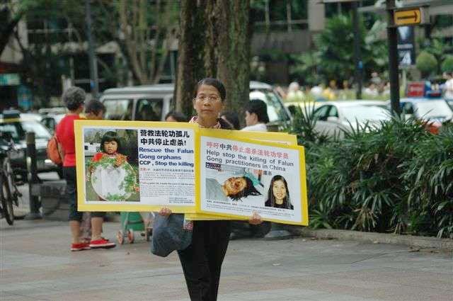 新加坡乌节路从列大厦到富临广场的人行道上正举办法国摄影家Yann Arthus-Bertrand 题为“鸟瞰世界”的摄影展。11月6日下午1点多,黄才华拿着印有“呼吁制止中共虐杀法轮功学员”及揭露法轮功学员高蓉蓉被毁容虐杀的展板路过,很巧,遇到李光耀正在看摄影展,旁边有警卫。警卫示意不要说话,黄女士告诉警卫,“你知道法轮功在中国被迫害的很厉害,在新加坡法轮功也同样的被不公正对待,你给我一个机会,我要和李资政说话。”于是黄向李光耀喊出搁在心里很久的话“你不能这样对待法轮功,你要还法轮功一个公道,全世界都在看着你。”“记住‘法轮大法好’。”