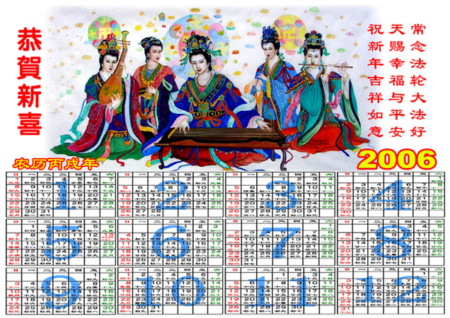 日历:法轮大法好;仙女