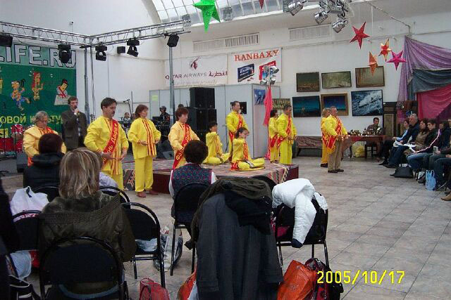 【明慧网2005年11月8日】2005年10月16、17两天,莫斯科法轮功学员被邀请参加了在莫斯科画家艺术中心举行的第四届国际文化节。学员们利用两天的时间做了两场功法演示,派发了很多真象资料,并利用功法演示的机会向观众介绍法轮大法的美好,告诉人们中共残酷迫害法轮功的真象。