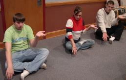 学完第五套功法后,大家围成一圈坐着交流体会,回答问题。每一位参加者都感觉非常好。学员告诉他们定期炼功和读《转法轮》的重要性,这样效果会更好。