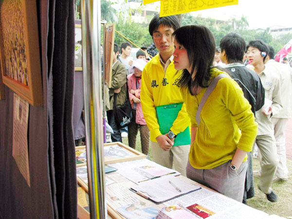 一个成功高中的男孩看到展出的内容,惊叹道:“建国中学竟然有这么有意义的社团,我们学校怎么没有?”当他知道社团在为营救受迫害法轮功儿童征签时,毫不考虑就在签名板上签下了自己的名字。