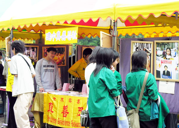 这次活动的效果很好,参与社团展活动的学员中,有许多是第一次参加此类讲清真象活动的学生,原来一开始相当腼腆,不知如何开口向人们征求签名支持反迫害与讲真象。渐渐的也态度大方的主动向人介绍了。