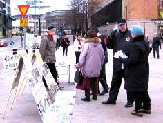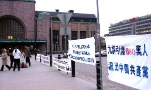 一位老年芬兰女士也问了同样的问题:你们在做什么?当明白是传九评,声援退党时,她说,其实芬兰人民都知道这些,关键是我们的政府和官员们应出来表态。