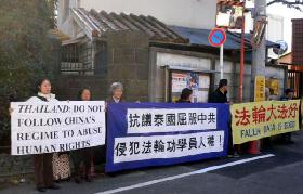 12月10日国际人权日,泰国法轮功学员为抗议中共恶警何雪健强奸两名女法轮功学员,在曼谷中使馆前呼吁制止迫害法轮功。在中共使馆压力下,数十名泰国警察、便衣穿过马路,强行搜法轮功学员的包,拖拉人,抢横幅等,已造成学员身体及财物损伤。14日,三名法轮功学员在旅游城市芭提雅发真象资料,其中两名学员遭警察殴打,随后,三名学员被抓,当晚获释。15日,八名法轮功学员在中使馆前被抓走。泰国警察的行为严重侵犯了法轮功学员的人权。