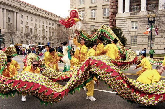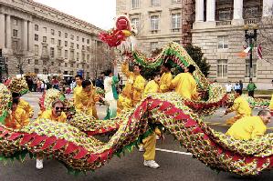 华盛顿DC法轮功学员在宪法大道上表演龙舞