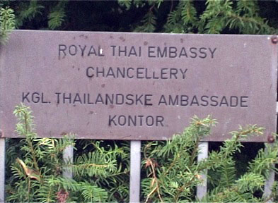 当学员来到泰国使馆后,接待人员表现的十分紧张。学员向她提出想与大使先生谈一谈的愿望,并给她一份信的复印件和其它资料后。该工作人员走到楼上。只听到楼上许多人紧张、激烈的讨论、商量声。许久,该工作人员走下楼来,说道:领事会把信转到国内去。在学员一再解释下,她才勉强收下学员给大使的信及有关资料。而从头至尾,未见大使踪影,也未见那位领事的身影。