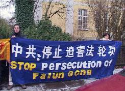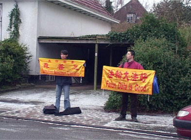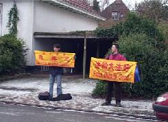 与此同时,几位学员在泰使馆外,打出“停止迫害法轮功”,“法轮大法好”,“世界需要真、善、忍”等横幅标语。