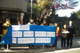 请愿信中,日本法轮大法学会请求大使转告对阿根廷政府的要求,希望政府调查几日前发生的中共暴徒殴打法轮功学员事件,逮捕暴徒,调查在场警察不履行职责的原因,并采取措施防止类似事件的发生。